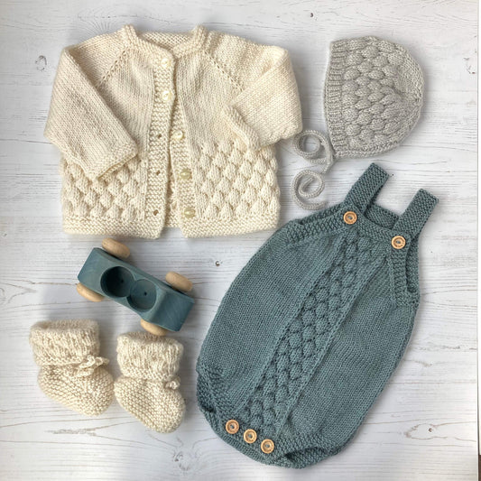 Knitting Pattern Bundle - BUBBLE STITCH BABY CARDIGAN, ROMPER, BONNET & BOOTIES