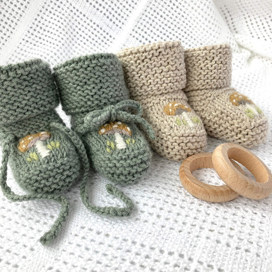 Baby Booties Knitting Pattern With Toadstool Embroidery -TOADSTOOL BOOTIES