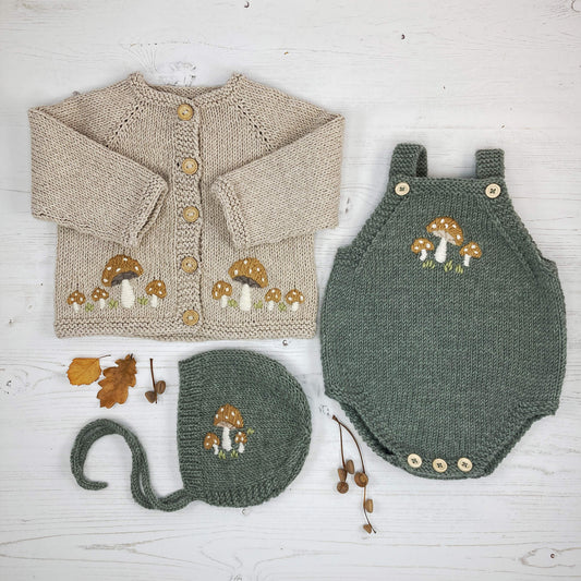 Knitting Pattern Bundle With Embroidery - TOADSTOOLS CARDIGAN, ROMPER & BONNET