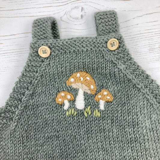 Knitting Pattern For Baby Romper Suit With Toadstool Embroidery - TOADSTOOLS ROMPER