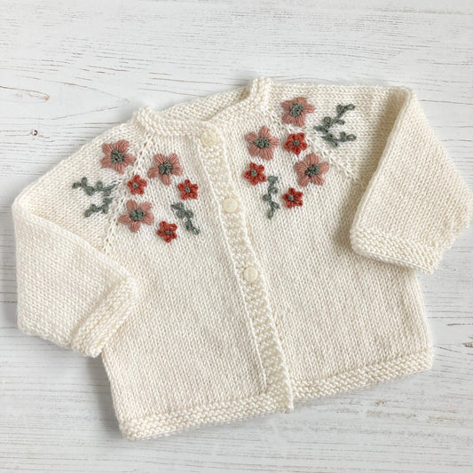 Hand Embroidered Cardigan Knitting Pattern- SIMPLE FLOWERS BABY CARDIGAN