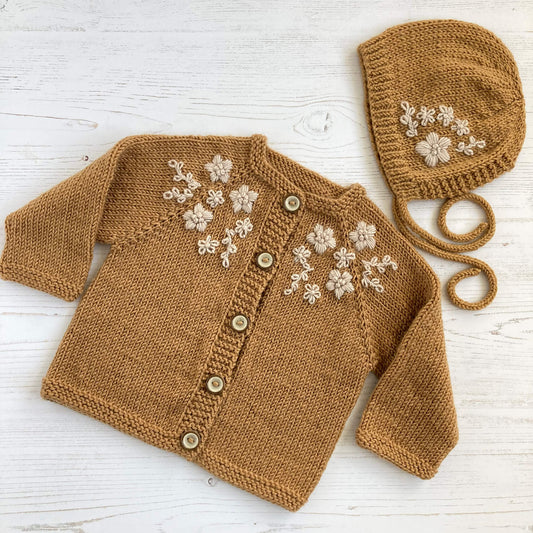 Knitting Pattern Bundle with Flower Embroidery - KENSI CARDIGAN & BONNET