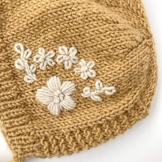 Baby Bonnet Knitting Pattern With Floral Embroidery - KENSI BONNET